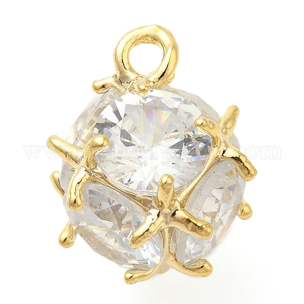 • Настоящее золото 18K Круглая стойка покрытие латунь с кубическим цирконием подвески шармы, без свинца и без кадмия, реальный 18 k позолоченный, 13x10x11 мм, отверстие : 1.5 мм