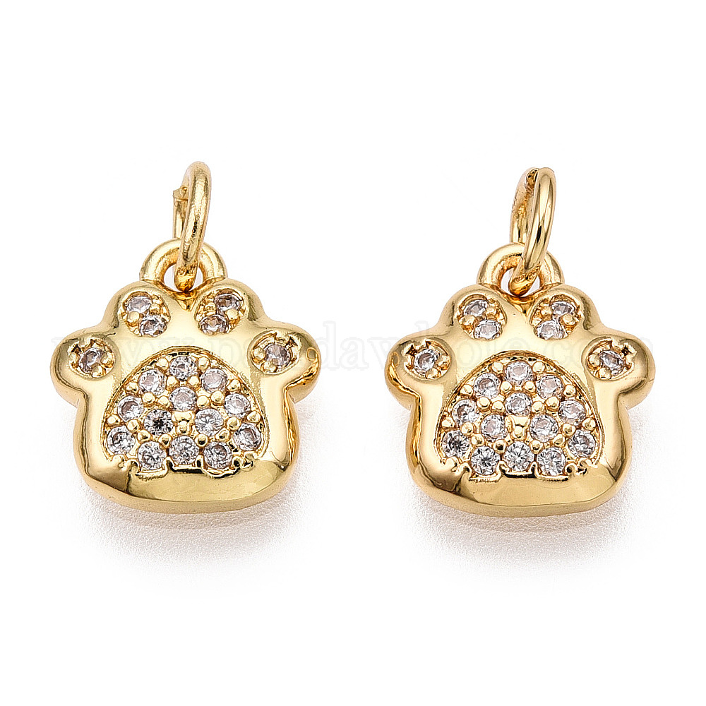 Латунные микропаве прозрачные кубические циркониевые подвески, с прыжковых колец, без никеля , собака отпечатки лап
