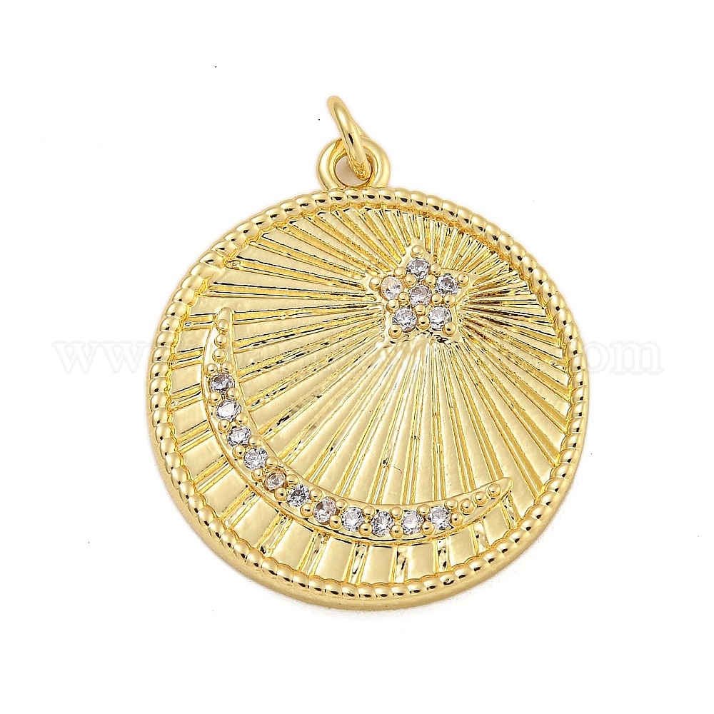 Стойка металлическая латунная микропрофилированная кубическая циркония подвески, с целью перехода в кольце, долговечный, без кадмия и без свинца, Плоский круглый с луной и звездой