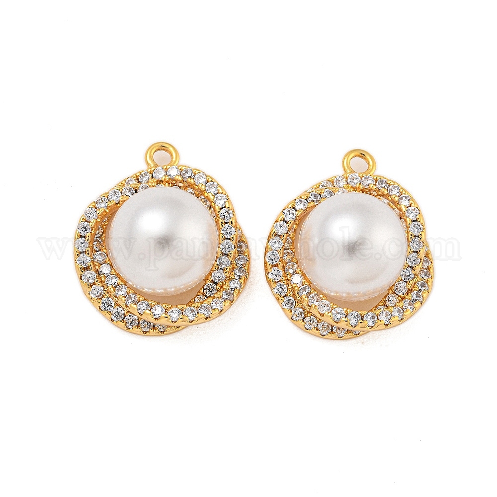 • Настоящее золото 18K Латунные микро проложить кубического циркония подвески, с пластмассовой жемчужиной abs, цветок, реальный 18 k позолоченный, 18x15x11 мм, отверстие : 1.6 мм