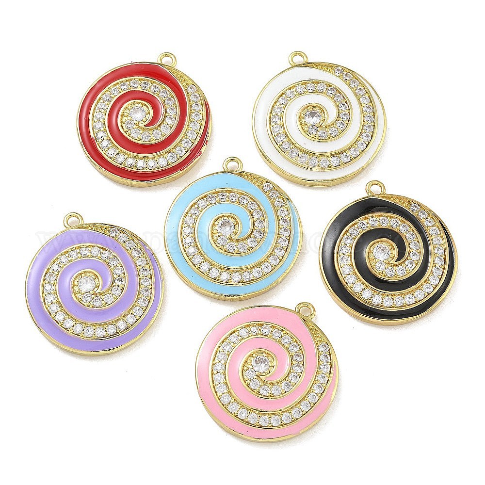 Стойка покрытие латунь микропаве прозрачный кубический цирконий с эмалевыми подвесками, долговечный, без свинца и без кадмия, реальный 18 k позолоченный, плоские круглые с вихревыми узором