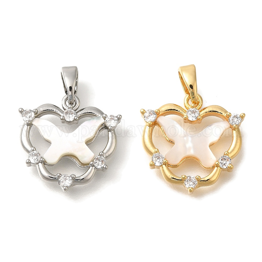 Подвески из латуни с микропаве из кубических цирконий и ракушек, бабочки прелести, с целью перехода в кольце