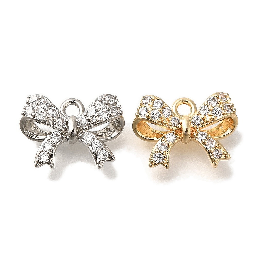 • Платина Латунные микро проложить кубического циркония подвески, долговечный, бантом прелести, платина, 9x13x5 мм, отверстие : 1.5 мм
