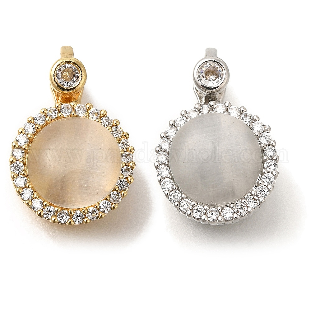 Латунные микро проложить кубического циркония подвески, с кошачий глаз, плоские круглые прелести