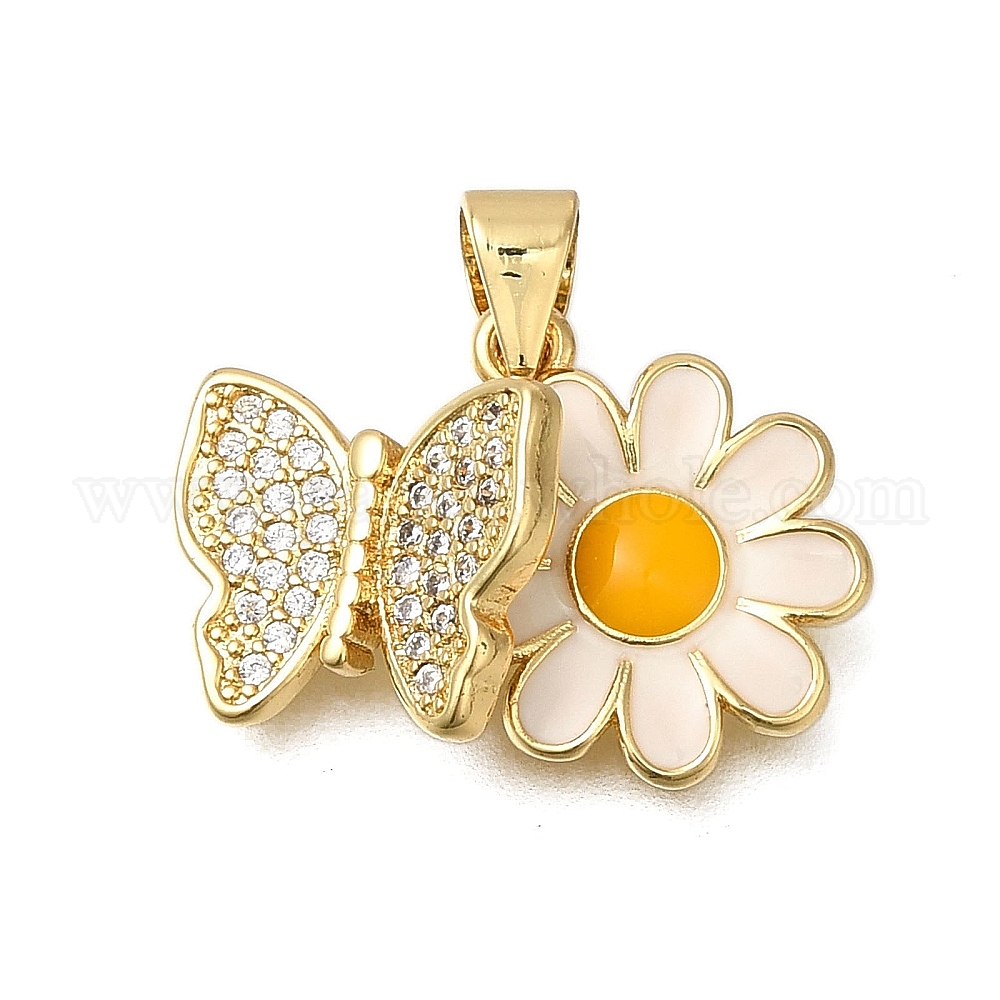 • Настоящее золото 18K Стойка металлическая латунная микропрофилированная кубическая циркония подвески, с эмалью, долговечный, без свинца и без кадмия, Подвески в виде цветка с бабочкой, с целью перехода в кольце, реальный 18 k позолоченный, 14.5x20.5x6 мм, отверстие : 4x3 мм