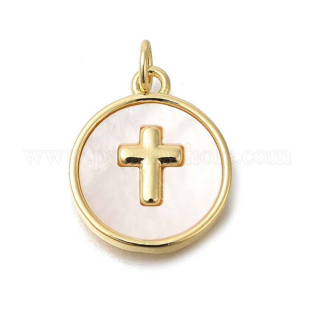 Латунные микро проложить кубического циркония подвески, с оболочкой, плоские круглые с поперечными прелести, Перейти кольцо