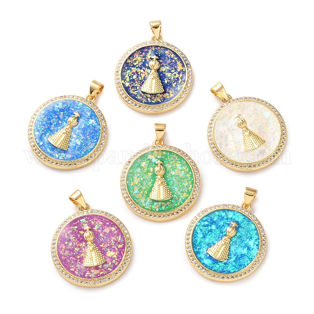 Латунные микропаве прозрачные подвески с фианитом, без кадмия и без свинца, с синтетическим опалом, реальный 18 k позолоченный, сплющенные чары, с целью перехода в кольце