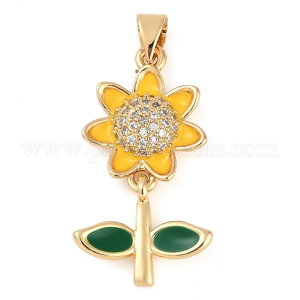Латунь с микропокрытием, Эмаль стиле, долговечный, без кадмия и без свинца, подсолнечник
