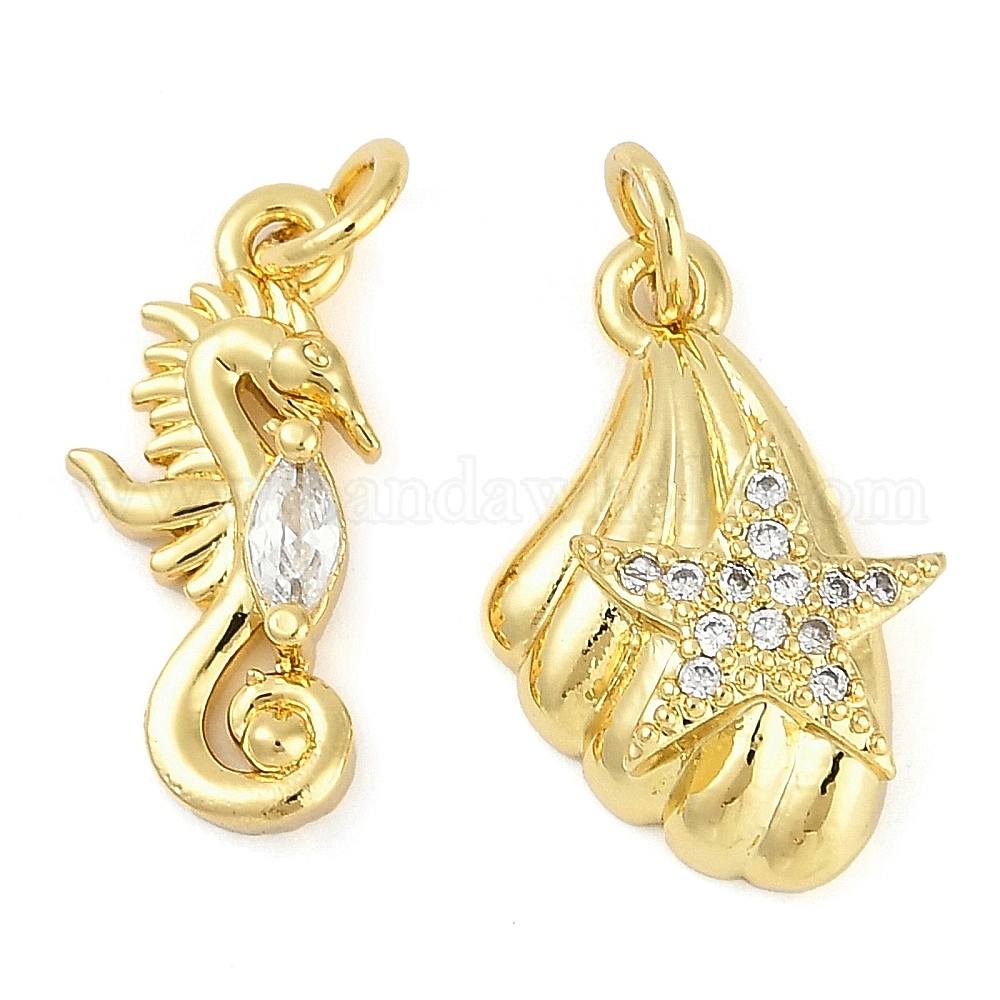 • Sea Horse Стойка металлическая латунная микропрофилированная кубическая циркония подвески, долговечный, без кадмия и без свинца, реальный 18 k позолоченный, морской конек, 18x8.5x3.5 мм