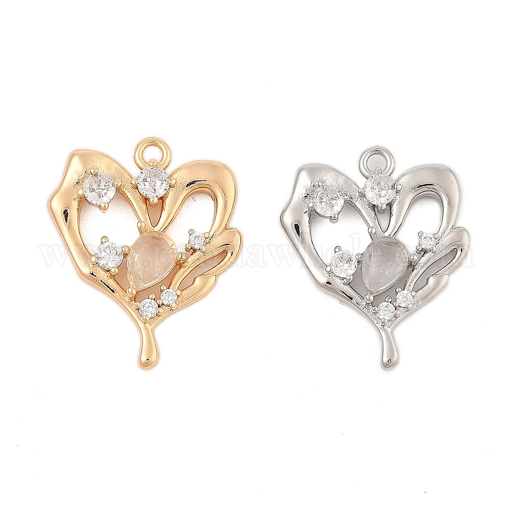 Латунные микро проложить кубического циркония подвески, без кадмия, без никеля и без свинца, со стеклом, сердце прелести