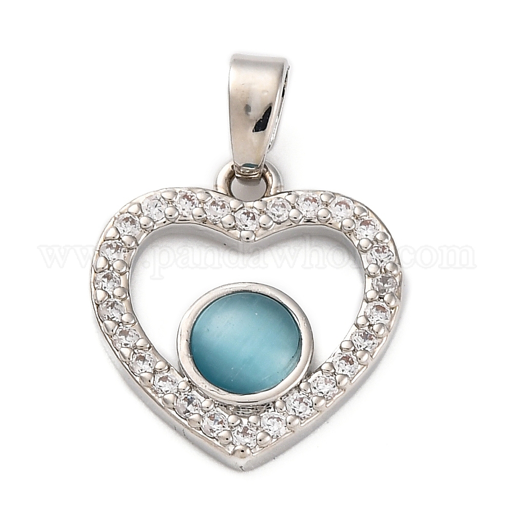 Латунные микропаве прозрачные подвески с фианитом, без кадмия, без никеля и без свинца, подвески в форме сердца с кошачьим глазом