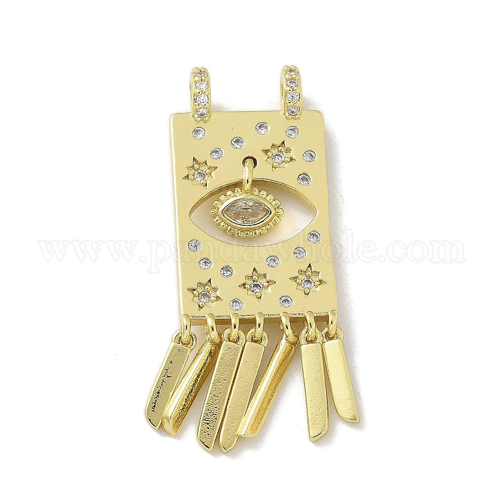 Латунные микропаве прозрачные подвески с фианитом, прямоугольник с подвесками в виде глаз и кисточек