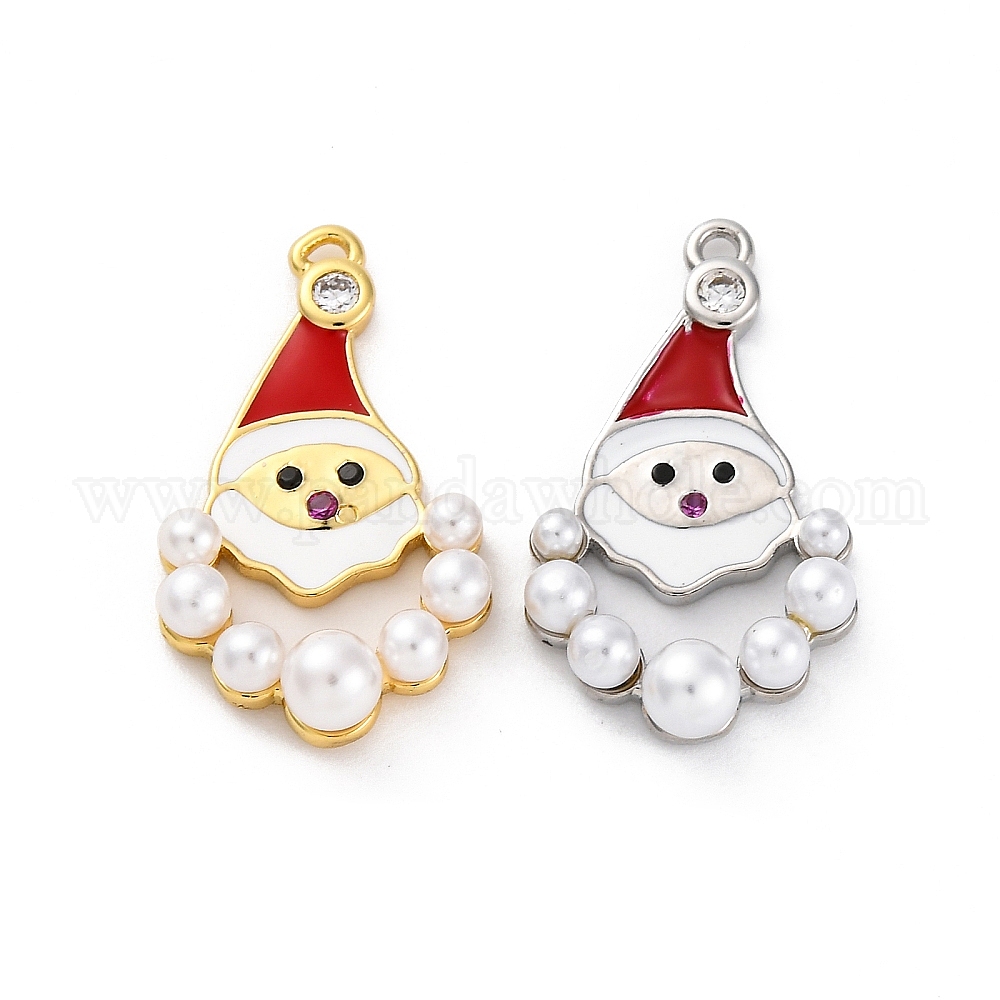 Санта-Клаус латунный микропаве кубический цирконий с эмалевыми подвесками, с имитацией жемчуга, подвески без свинца и кадмия