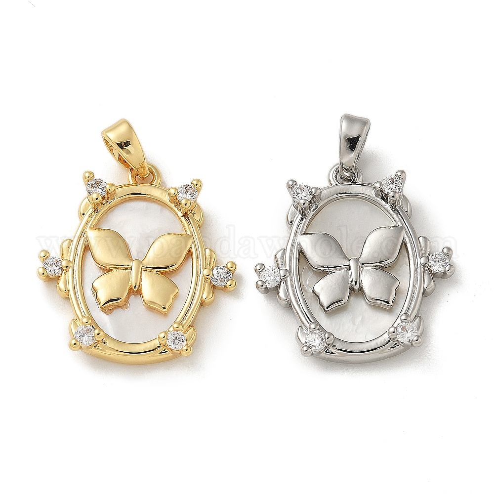 Подвески из латуни с микропаве из циркония, с оболочкой, овал с подвесками в виде бабочек