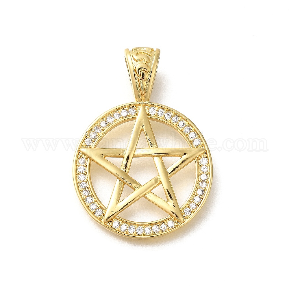 • Настоящее золото 18K Покрытие стойки латунь с подвесками из фианита, долговечный, без свинца и без кадмия, плоские круглые и звездные подвески, реальный 18 k позолоченный, 36x26x2.5 мм, отверстие : 3.5x6.5 мм