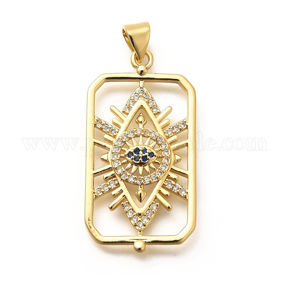 • Настоящее золото 18K Стойка металлическая латунная микропрофилированная кубическая циркония подвески, долговечный, без свинца и без кадмия, прямоугольник с оберегами от сглаза, реальный 18 k позолоченный, 33x17.5x3.5 мм, отверстие : 5x3 мм