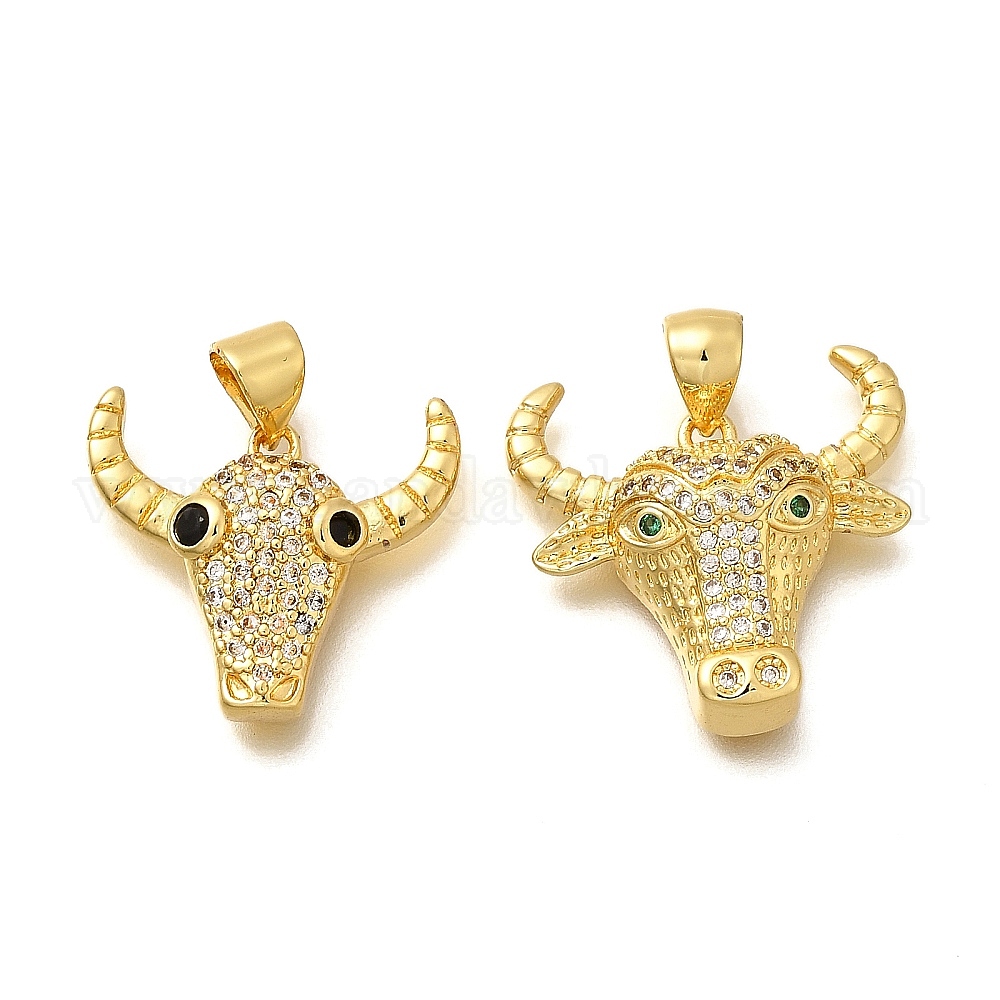 • Настоящее золото 18K Стойка металлическая латунная микропрофилированная кубическая циркония подвески, долговечный, без свинца и без кадмия, крупный рогатый скот прелести, реальный 18 k позолоченный, 17x19x4.5 мм, отверстие : 5x3 мм