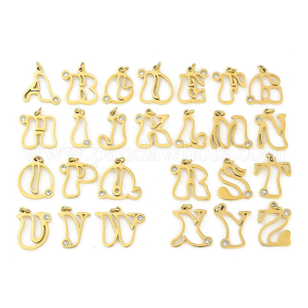 304 подвески из нержавеющей стали, с кубического циркония, подвески-буквы с соединительными кольцами, реальный 18 k позолоченный