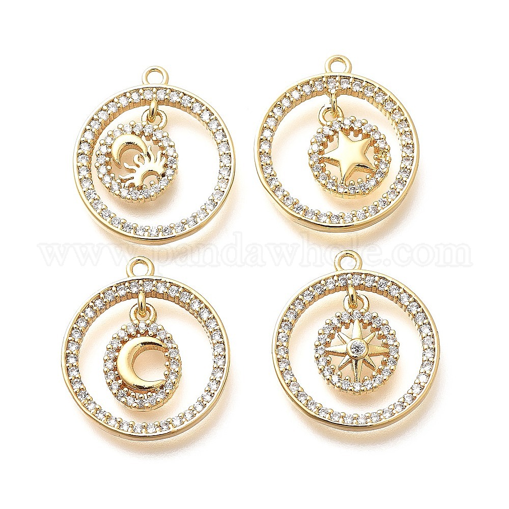 Латунные микро проложить кубического циркония подвески, без кадмия, без никеля и без свинца, реальный 18 k позолоченный, кольцо прелести (02Z7A6)