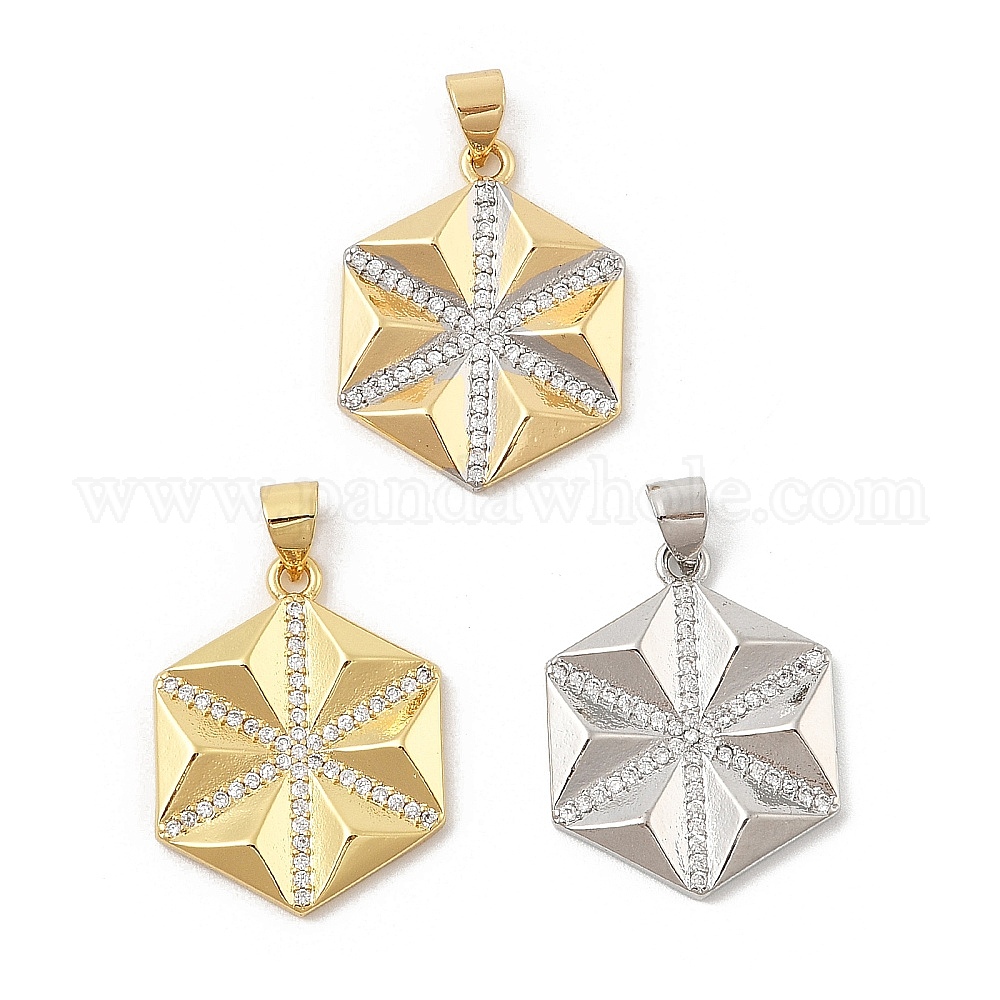 Латунные микро проложить кубического циркония подвески, без кадмия и без свинца, шестигранные прелести