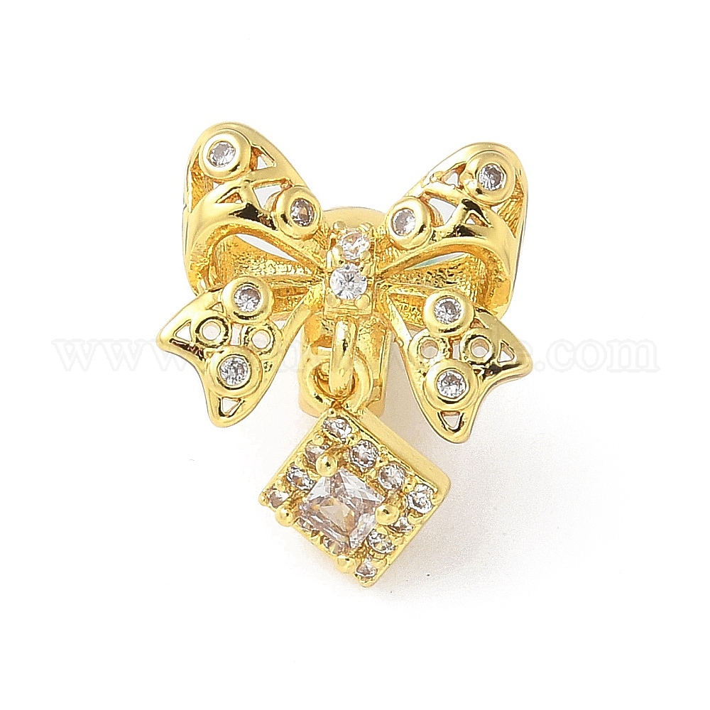 • Настоящее золото 18K Латунные микропаве прозрачные подвески с фианитом, бантом прелести, реальный 18 k позолоченный, 16x13x10 мм, отверстие : 4.5 мм