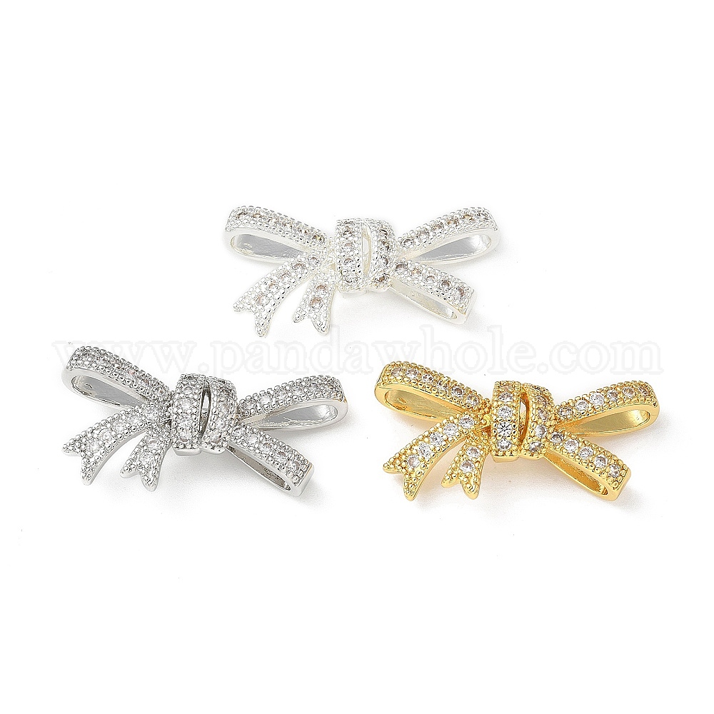 Латунные микропаве прозрачные подвески с фианитом, бантом прелести (02ZKBZ)