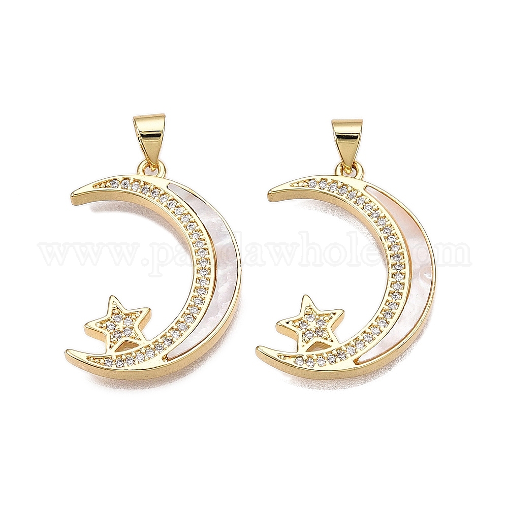 Латунные микропаве прозрачные подвески с фианитом, без кадмия и без свинца, с оболочкой, звездные и лунные чары