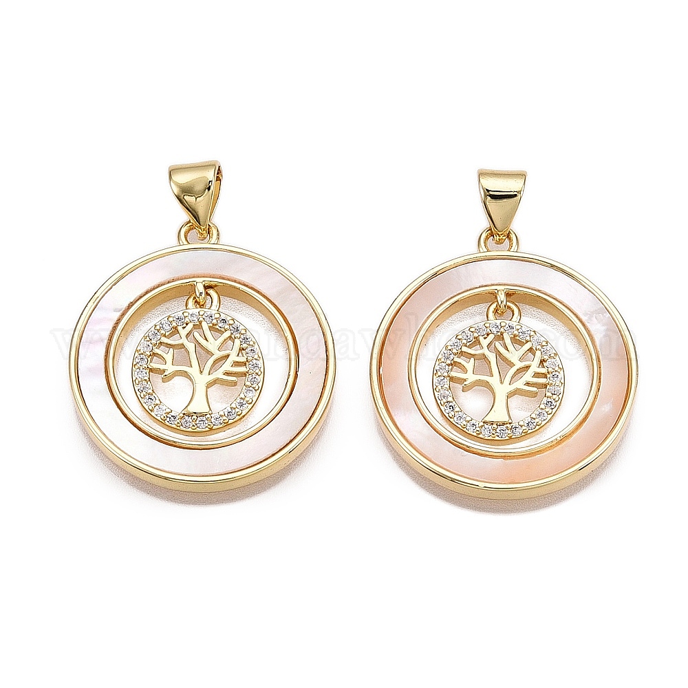 Латунные микропаве прозрачные подвески с фианитом, без кадмия и без свинца, с оболочкой, плоские круглые и древесные подвески