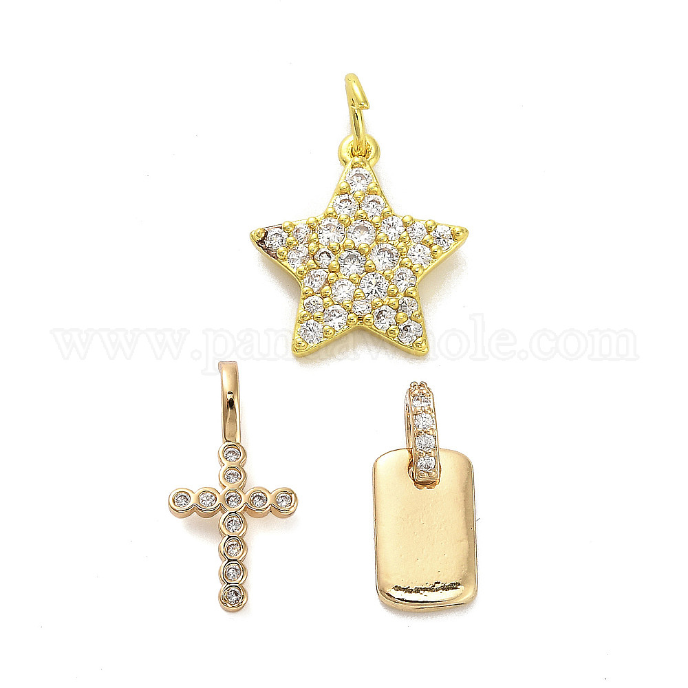 Латунные микропаве прозрачные подвески с фианитом, золотые