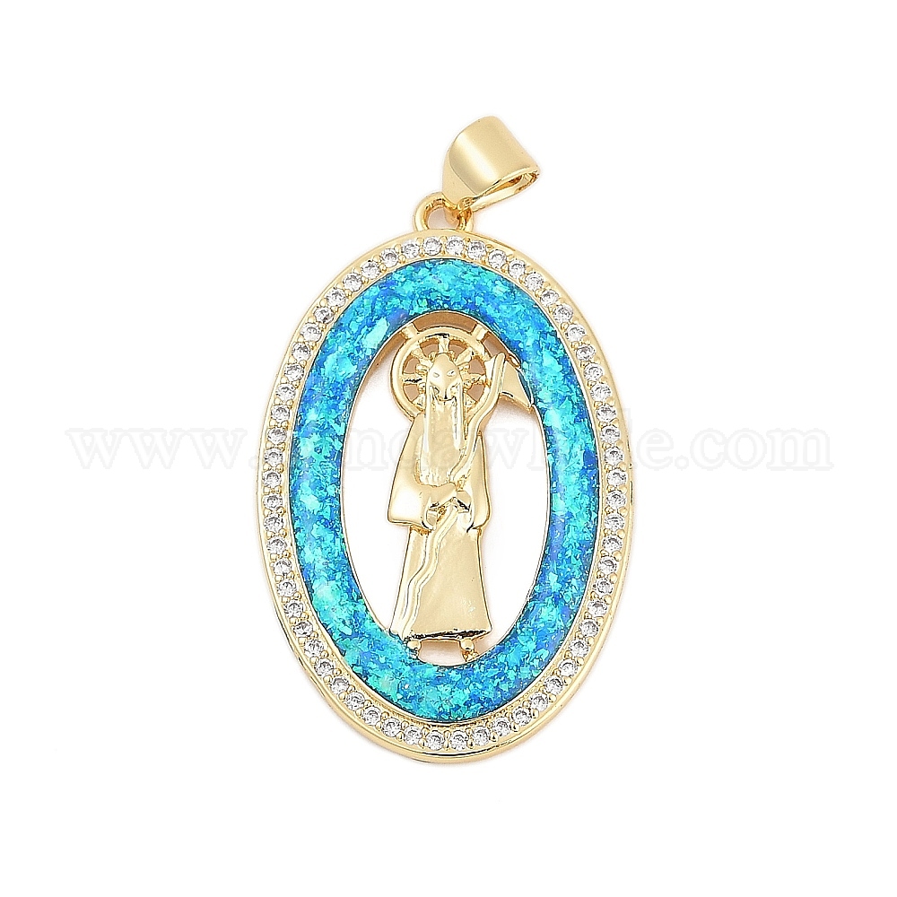 Латунные микропаве прозрачные подвески с фианитом, овальные, с синтетическим опалом, долговечный, стойки покрытие, без свинца и без кадмия