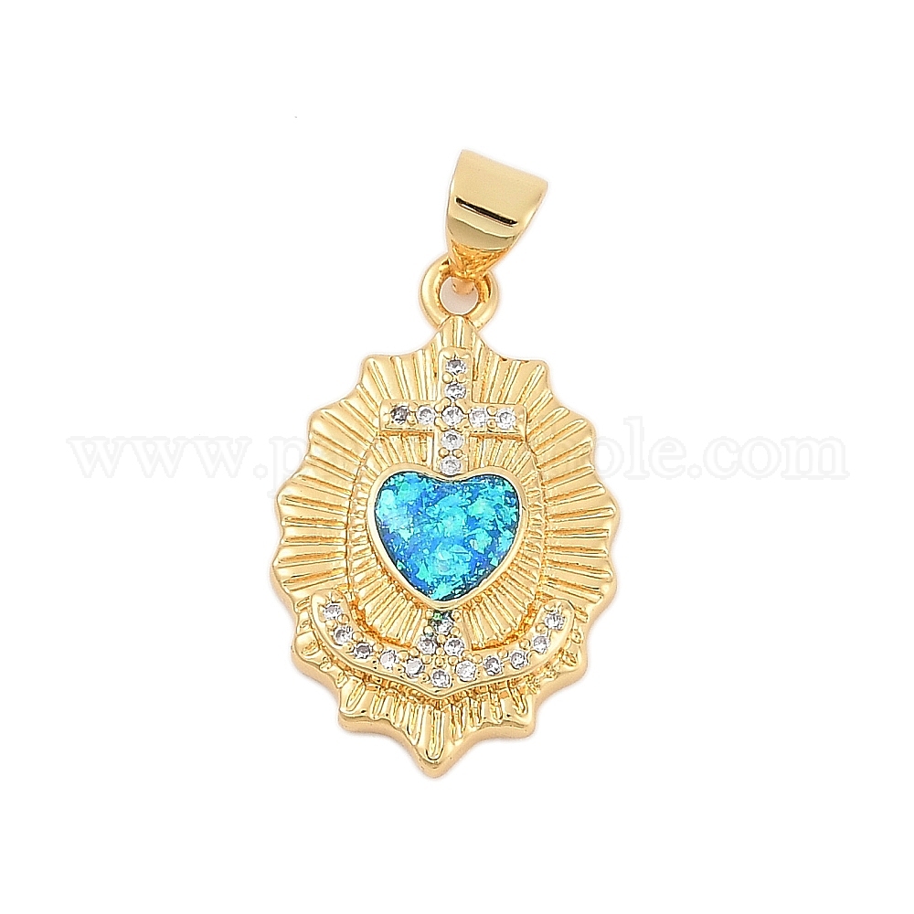 Латунные микро проложить кубического циркония подвески, сердце прелести, с синтетическим опалом, долговечный, стойки покрытие, без свинца и без кадмия (02ZPTM)