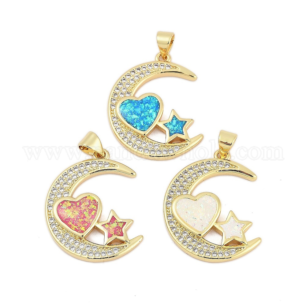 Латунные микро проложить кубического циркония подвески, с синтетическим опалом, долговечный, стойки покрытие, без свинца и без кадмия, луна с сердцем и звездой, реальный 18 k позолоченный (02ZPXH)