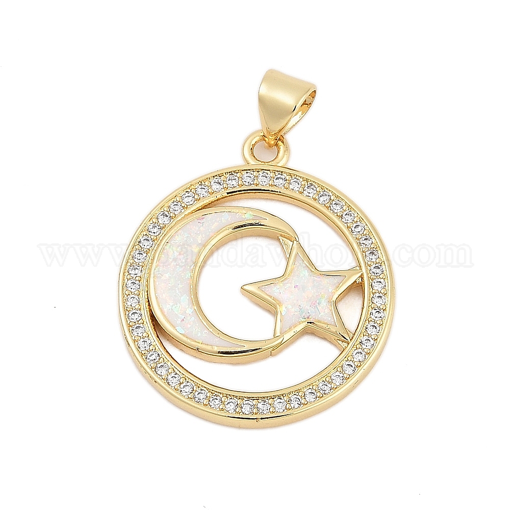 Латунные микро проложить кубического циркония подвески, Луна и звезды прелести, с синтетическим опалом, долговечный, стойки покрытие, без свинца и без кадмия (02ZPXR)