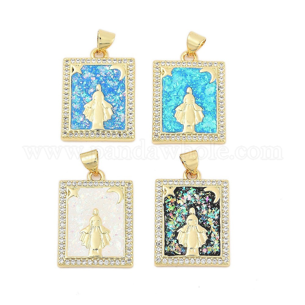 Латунные микро проложить кубического циркония подвески, прямоугольник с девчачьими чарами, с синтетическим опалом, долговечный, стойки покрытие, без свинца и без кадмия, реальный 18 k позолоченный