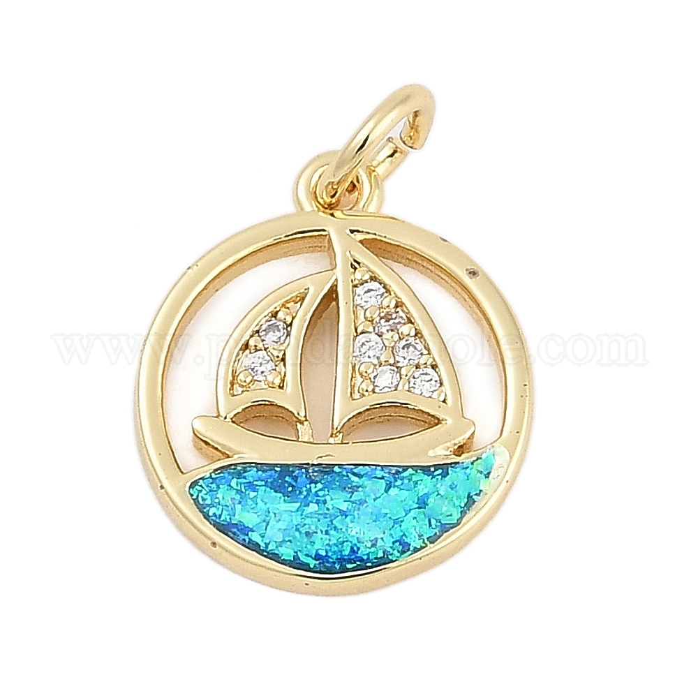 • Настоящее золото 18K Латунные микро проложить кубического циркония подвески, Парусник прелести, с синтетическим опалом и переходным кольцом, долговечный, стойки покрытие, без свинца и без кадмия, реальный 18 k позолоченный, 15x13x2 мм, отверстие : 3 мм