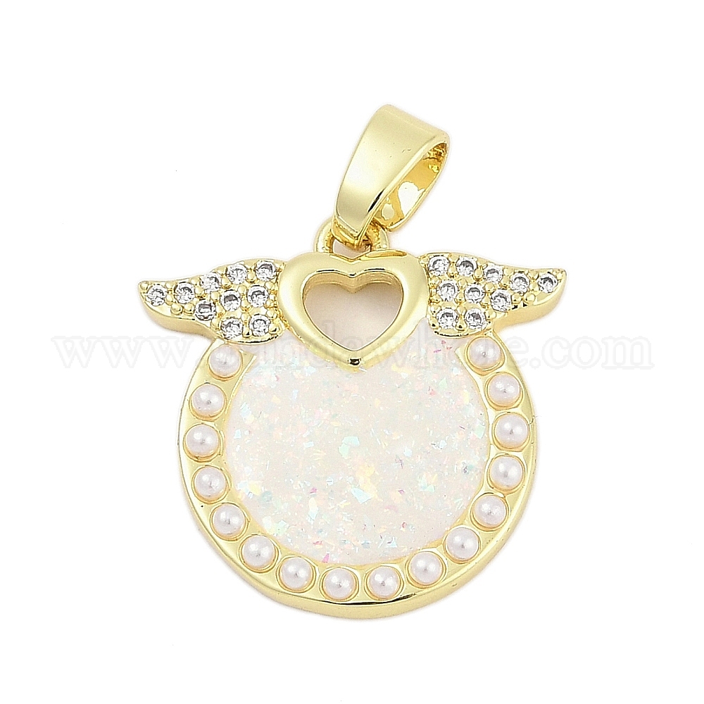 Латунные микро проложить кубического циркония подвески, плоский круг с подвесками в виде крылышек и сердечек, с синтетическим опалом и искусственным жемчугом из АБС-пластика, долговечный, стойки покрытие, без свинца и без кадмия