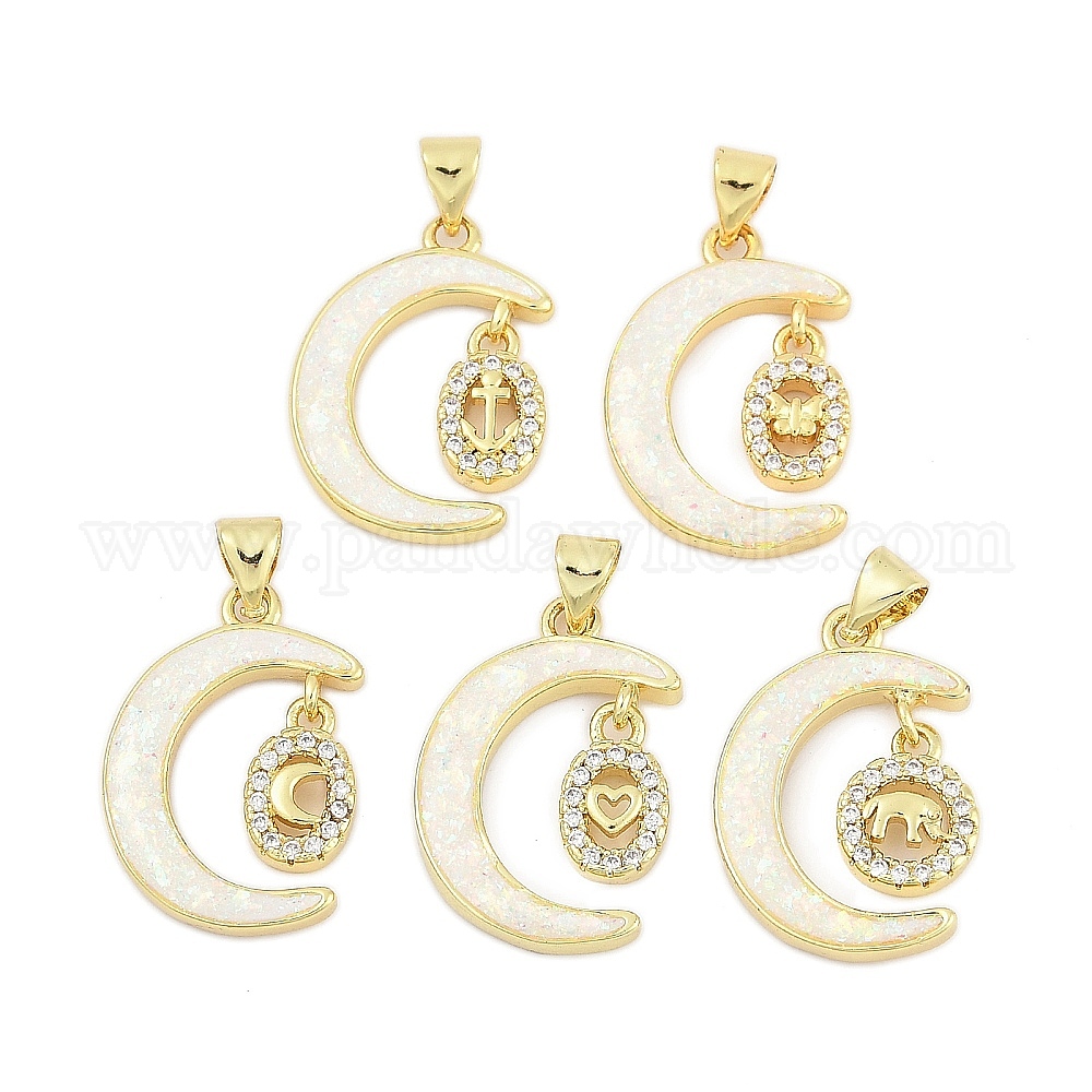 Латунные микро проложить кубического циркония подвески, с синтетическим опалом, долговечный, стойки покрытие, без свинца и без кадмия, подвеска луна и овал
