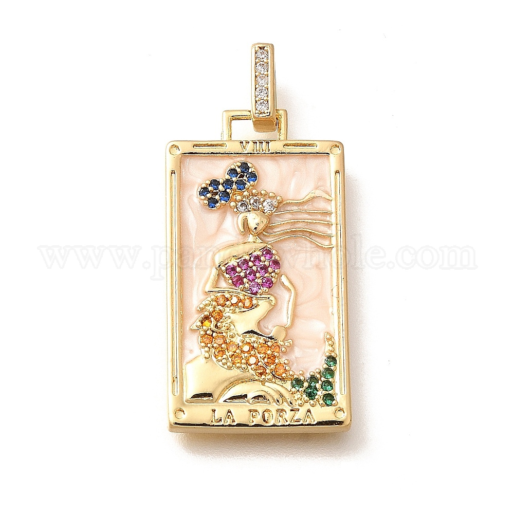 Подвески из латуни с микропаве из циркония, карты таро чары, с эмалью, стойки покрытие, без свинца и без кадмия