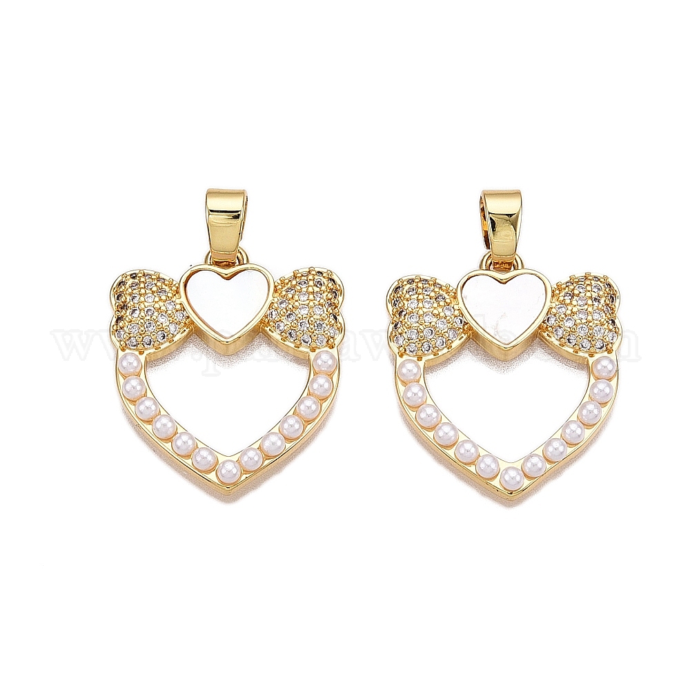 Латунные микропаве прозрачные подвески с фианитом, без кадмия и без свинца, с ракушкой и имитацией жемчуга из АБС, подвески в виде сердца и банта