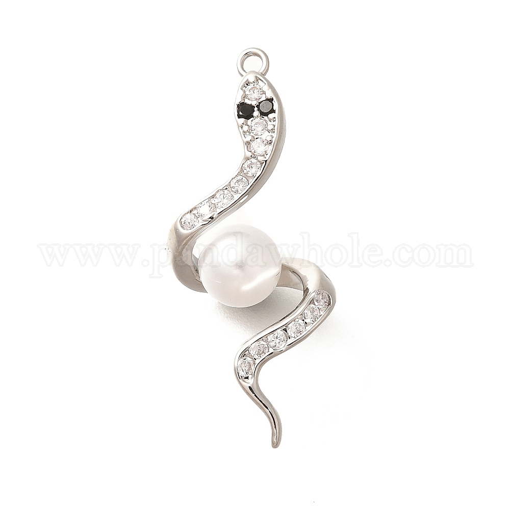Латунные микро проложить кубического циркония подвески, без кадмия, без никеля и без свинца, с абс пластмассовой имитационной жемчужиной, змеиные чары
