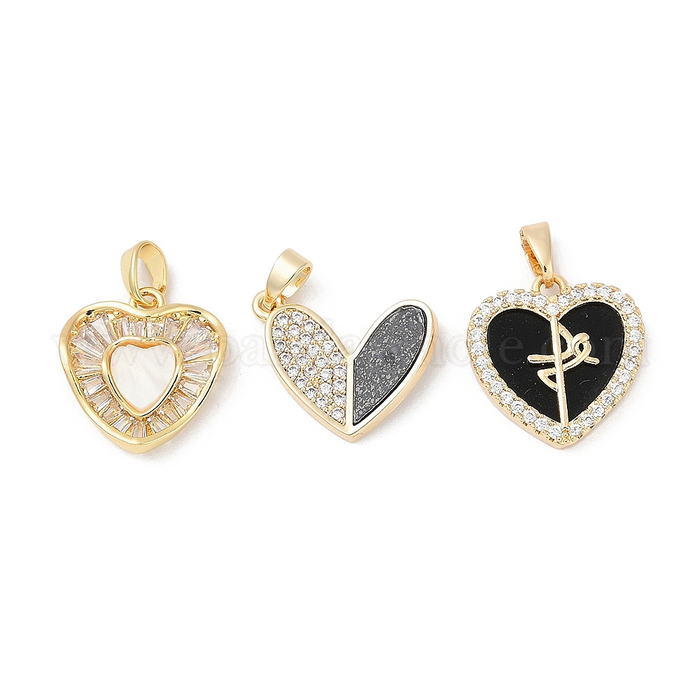 Латунные микропаве прозрачные подвески с фианитом, сердце, cmолой, стойки покрытие, долговечный, без свинца и без кадмия, реальный 18 k позолоченный