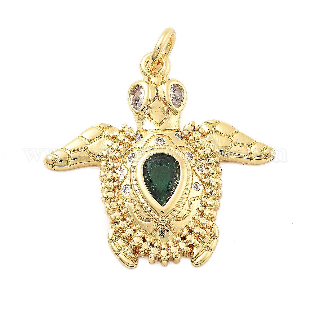 Латунные микро проложить кубического циркония подвески, без кадмия, без никеля и без свинца, прелести морской черепахи, со стеклом и прыжковым кольцом, реальный 18 k позолоченный