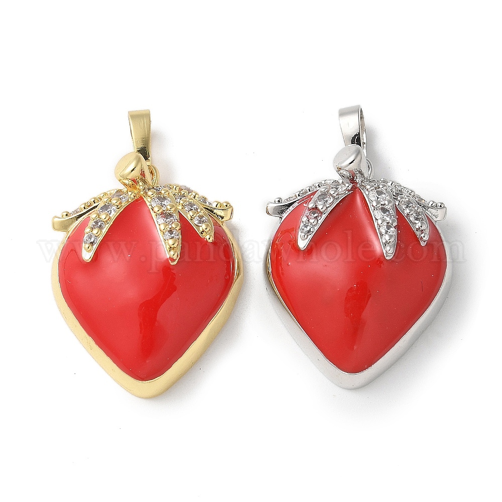 Латунные микро проложить кубического циркония подвески, клубника прелести, с emamel, стойки покрытие, долговечный, без кадмия и без свинца