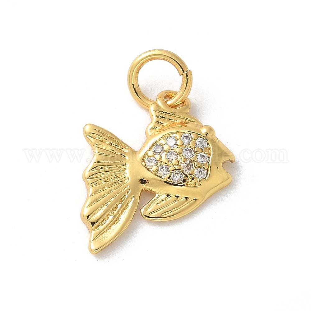 • Настоящее золото 18K Латунные микро проложить кубического циркония подвески, без кадмия, без никеля и без свинца, рыбы прелести, с целью перехода в кольце, реальный 18 k позолоченный, 10x12x2 мм, отверстие : 3.4 мм