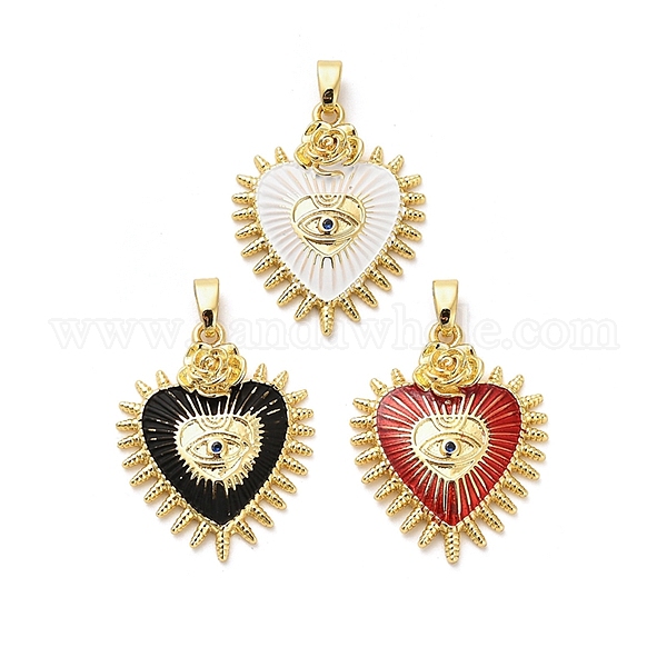 Латунные микро проложить кубического циркония подвески, без кадмия, без никеля и без свинца, сердце с сглаза, с эмалью, реальный 18 k позолоченный