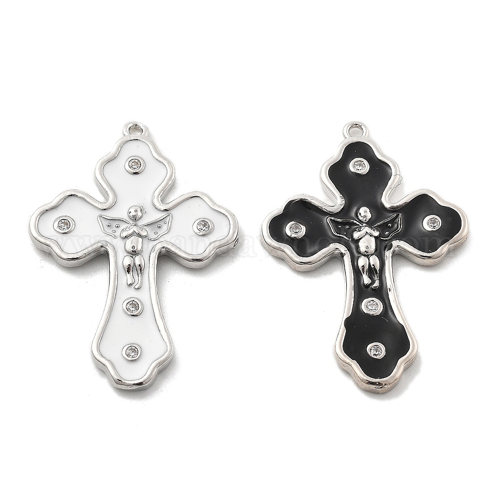 Латунные микро проложить кубический цирконий подвеска, крестик, с эмалью, без свинца и без кадмия, долговечный