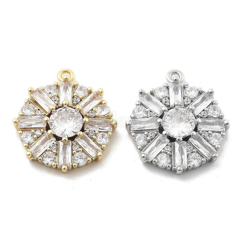 Латунные микропаве прозрачные подвески с фианитом, плоские круглые прелести, стойки покрытие, долговечный, без свинца и без кадмия
