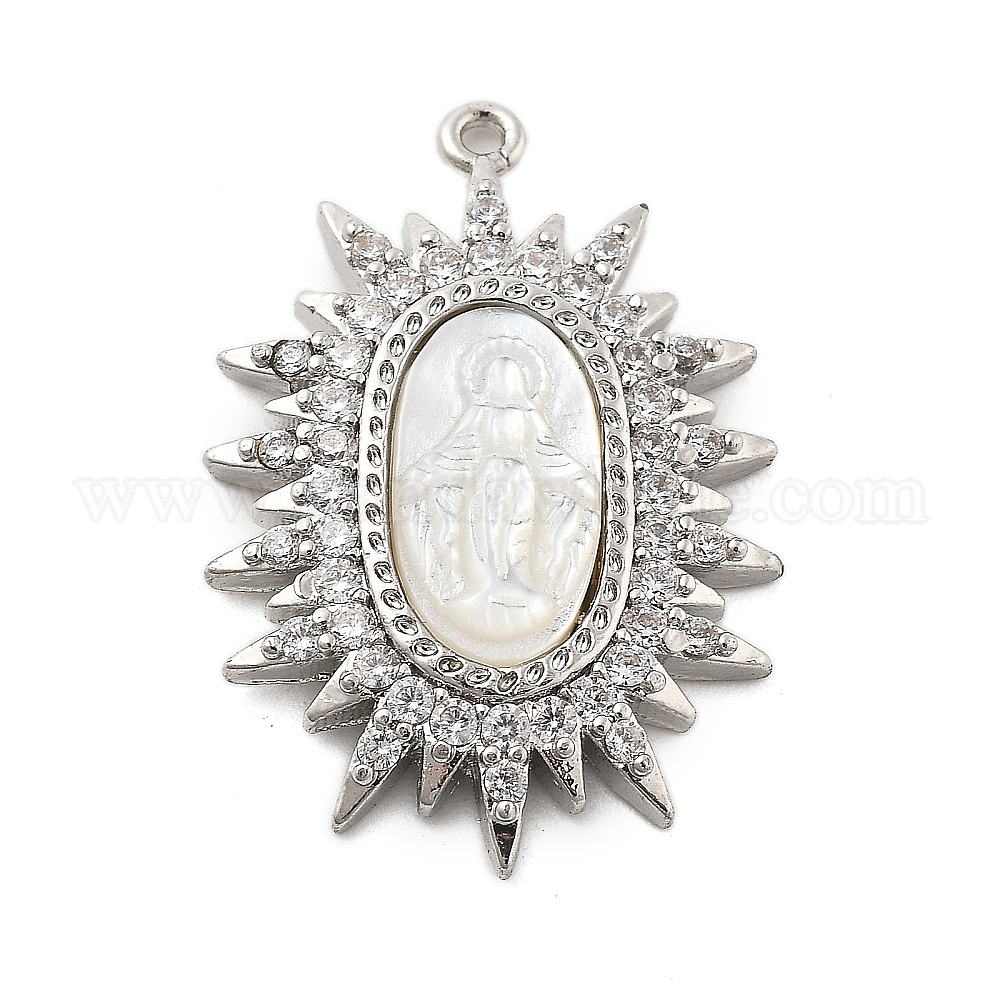 Латунные микро проложить кубического циркония подвески, овальные с рисунками " virgin mary", с оболочкой, без свинца и без кадмия, долговечный