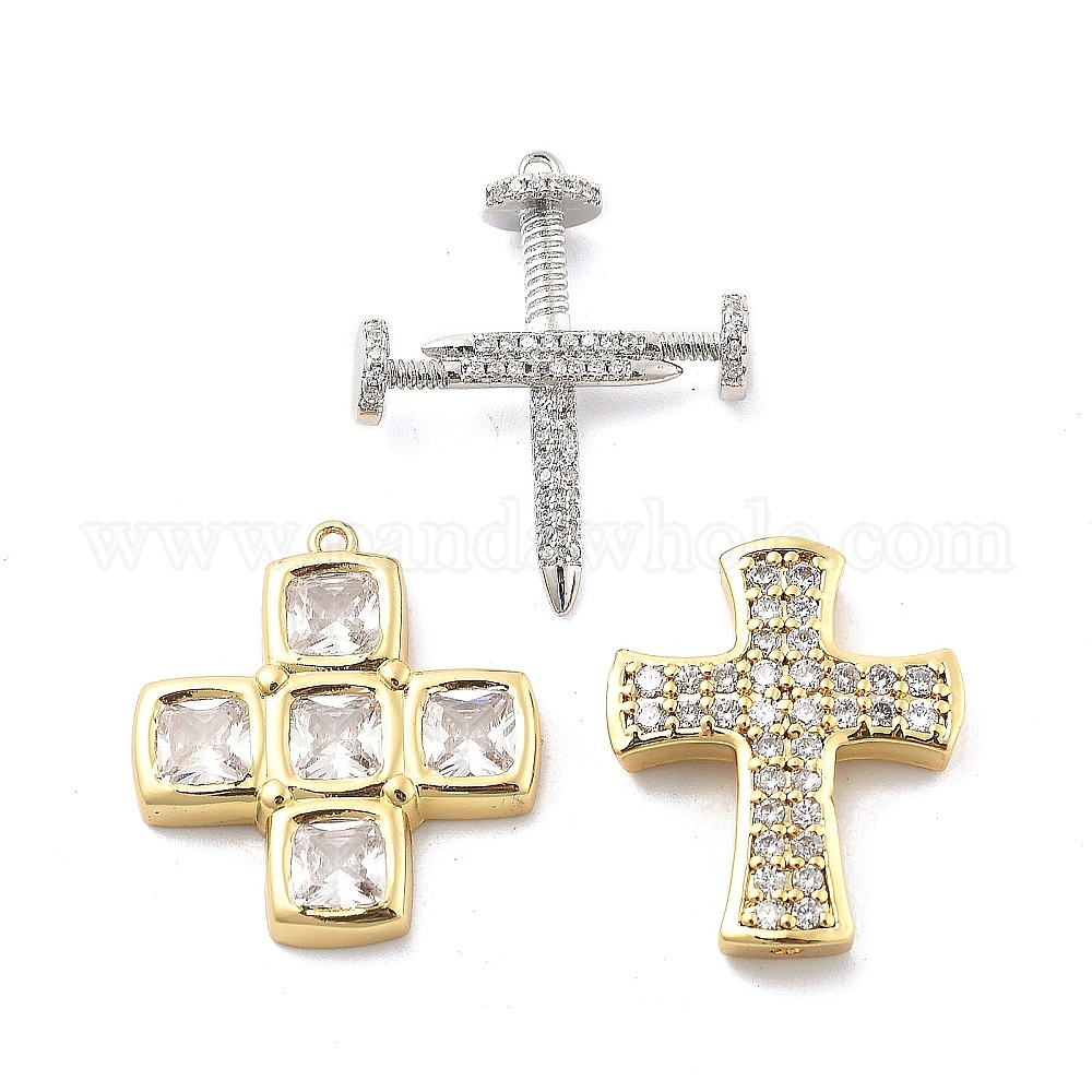 Латунные микропаве прозрачные подвески с фианитом, крест прелести, стойки покрытие, долговечный, без свинца и без кадмия