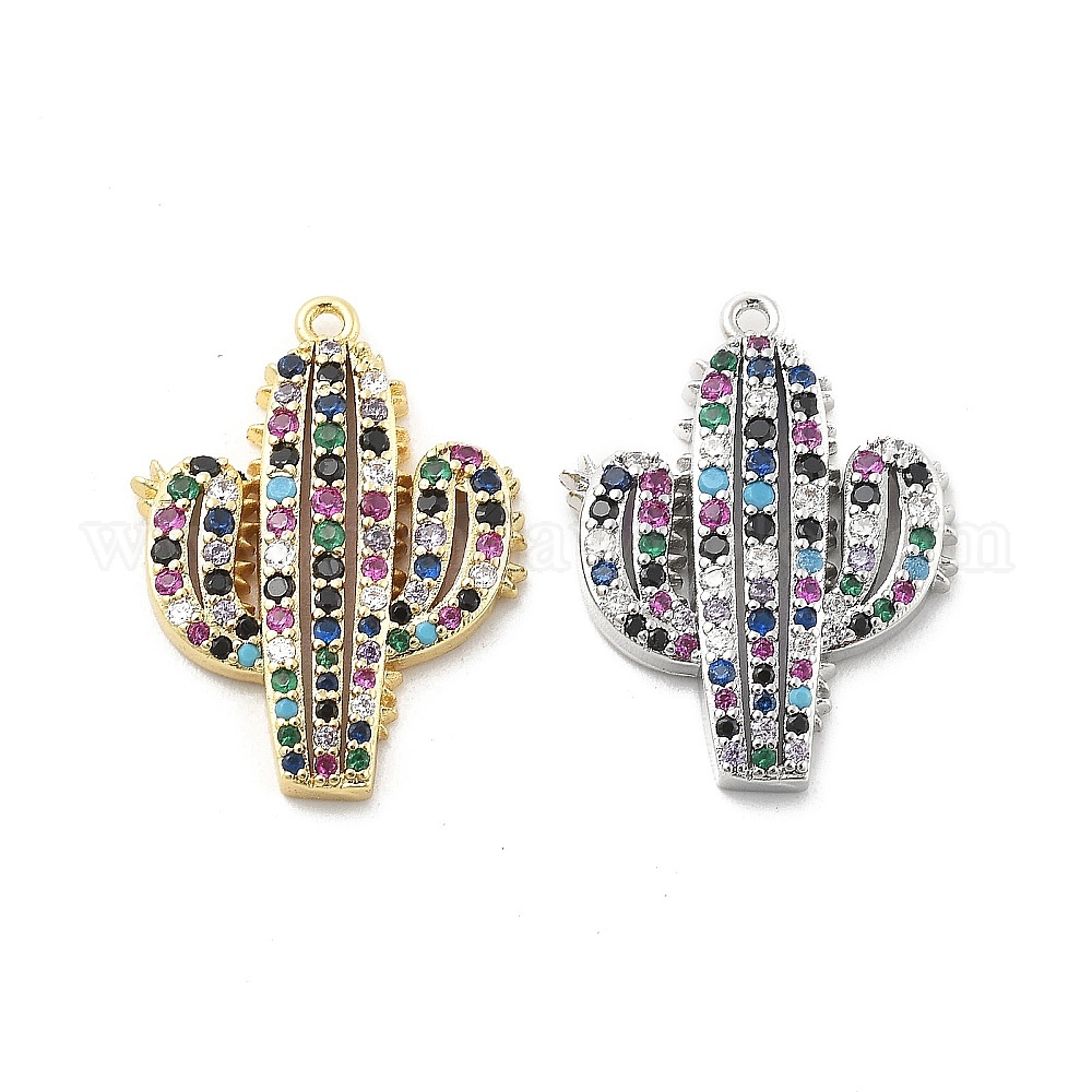 Латунные микро-паве красочные кубические циркониевые подвески, кактус прелести, стойки покрытие, долговечный, без свинца и без кадмия